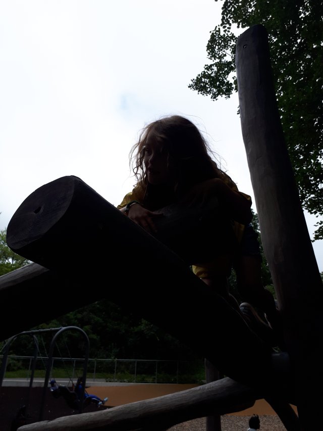 I waited for her in front of the school. I could see another child on the bus trying to comfort her… She didn’t see me yet and was crying. The new school is not going over well.
