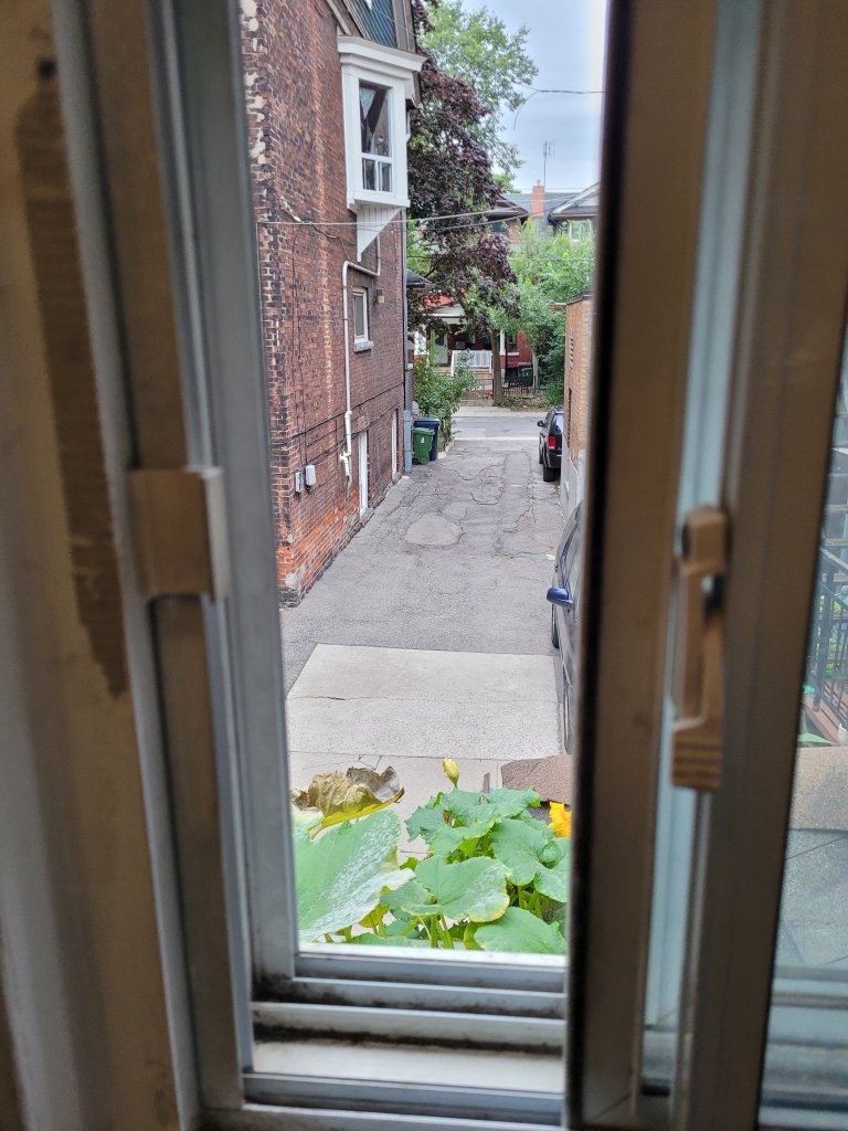 There’s a space in the upstairs bedroom window I leave open; big enough for Ned the cat to jump in and out as required. This was not designed for Ned… I like the fresh air.
