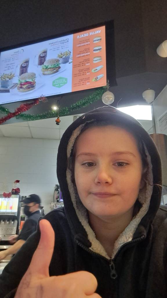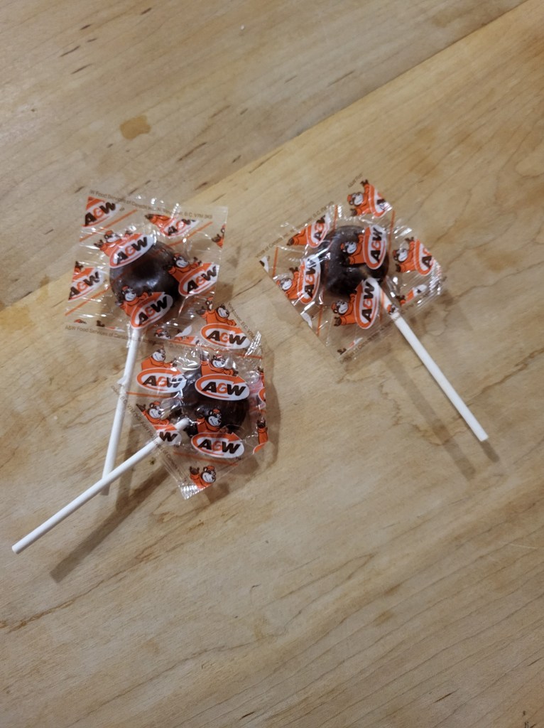 “The Asian guy at A&W is my favorite! ” She smiles. “He always gives me 2 lolys. I didn’t have enough to get a drink and he said, ‘No worries, the drinks on me.’ Then he gave me 4 lollipops… Made my day. “